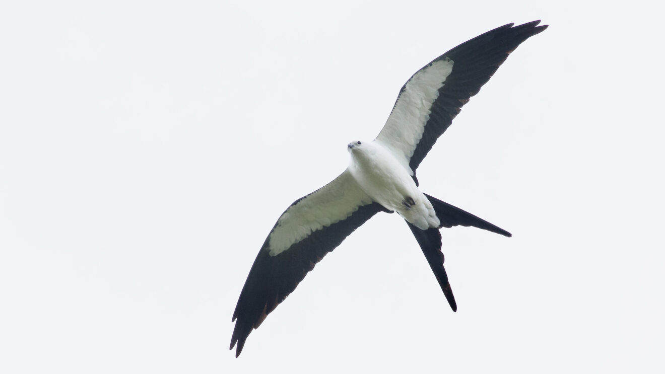 Hawkwatches on Cape Cod have rarely, but regularly, reported Swallow-tailed Kites during spring migration for years now. Head of the Meadow Beach most recently reported two in 2024, while Pilgrim Heights recorded single birds in 2009, 2015 and 2017. The hawkwatching community has typically considered Swallow-tailed Kite sightings in Massachusetts to be migration overshoots—a scenario where kites that intended to make landfall in southeastern states get blown off course by strong winds and wind up hundreds of miles north of their target. Swallow-tailed Kites regularly make very long over-water transits; 48 hours of consecutive flight is not unusual—and some experts think that they could stay airborne as long as 96 hours. With this level of endurance, it’s not surprising that some birds might end up well outside of their planned destination.